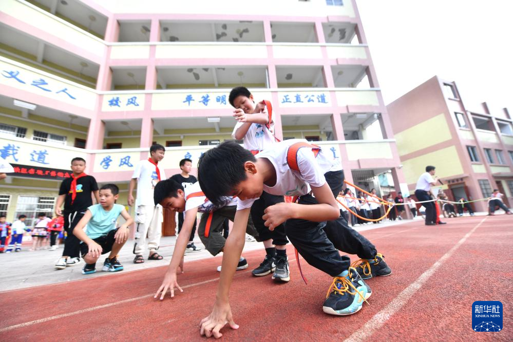 9月26日,在梧州市长洲区古道小学,学生们在大课间进行“大象拔河”。