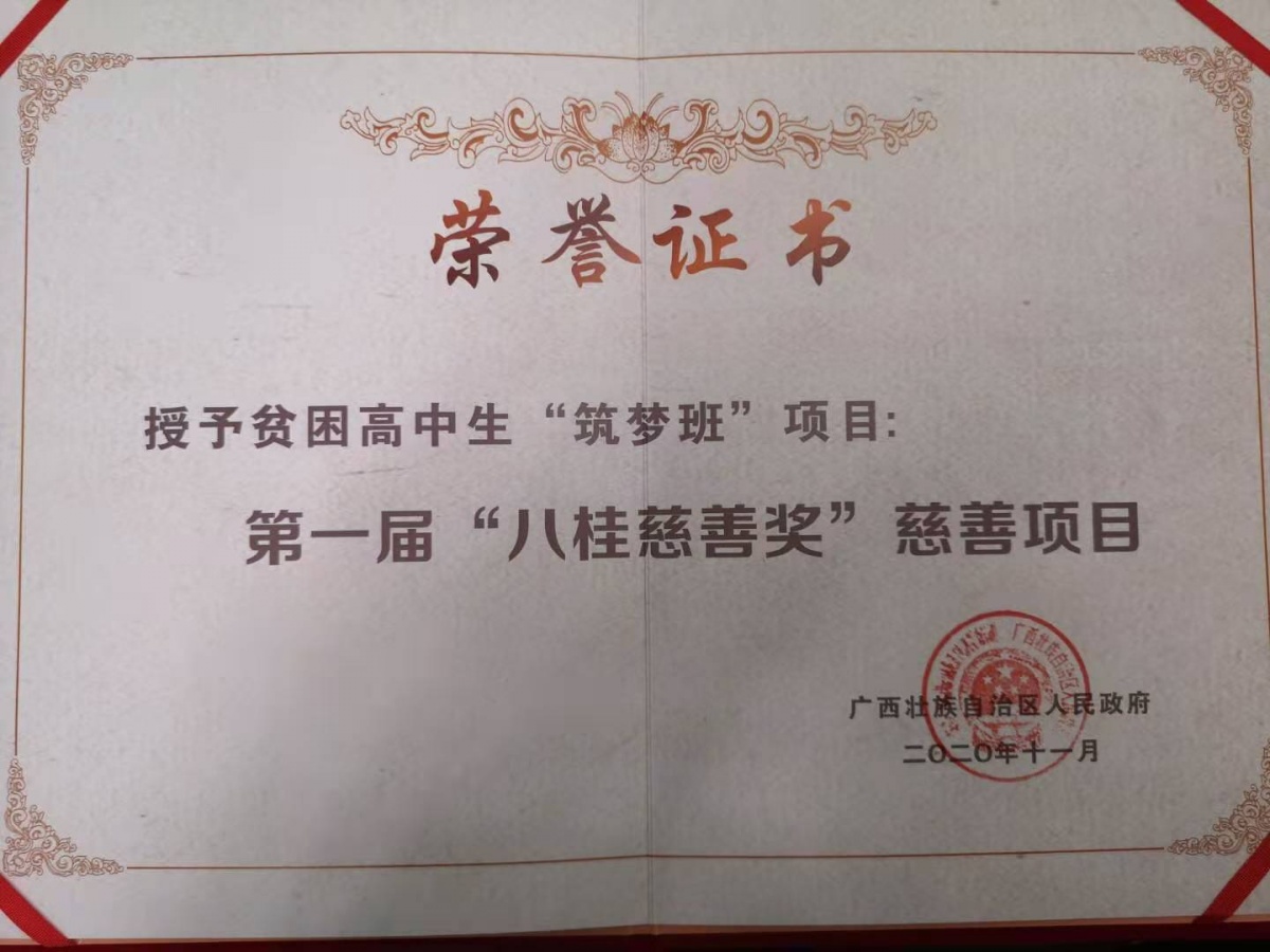 据悉,贫困高中生"筑梦班"项目2016年启动至今,一直得到自治区教育厅的大力支持和推广,是基金会教育精准扶贫的品牌项目。五年来,在有关单位、爱心企业、爱心人士的支持下,基金会在全区25所普通高中共开设了49个"筑梦班",2450名家庭贫困学生受益。在项目执行过程中,探索建立了资金扶持、成长陪伴、能力提升"三位一体"的支持体系,除了助学金外,还设立了奖教奖学金、成才基金。目前2016级、2017级“筑梦班“的学生已经顺利完成了高中学业,高考中也取得了非常不错的成绩。2020年高考,300名“筑梦生“全部上本科线,一本上线率96%。其中985高校录取81人,211工程大学录取84人,有两位同学被清华大录取。