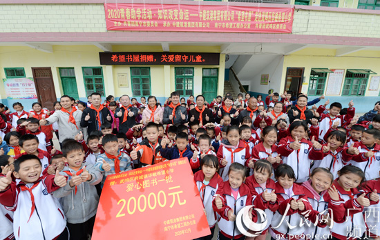 人民网南宁12月3日电 为关爱农村留守儿童,持续提升希望小学教育水平,进一步促进城乡教育均衡,12月3日,由共青团南宁市委员会主办,中建筑港集团有限公司、南宁市希望工程办公室、共青团武鸣区委员会共同承办的青春助学活动 知识改变命运·中建筑港“希望书屋“捐赠活动在南宁市武鸣区华敏希望小学开展。