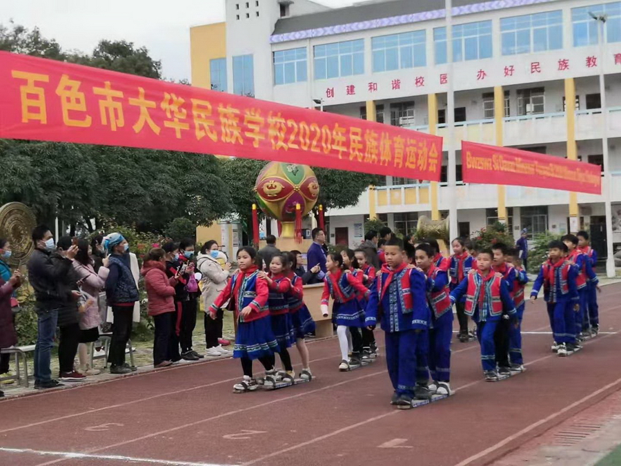 12月18日,百色市大华民族学校举办以“传统体育促健康 民族团结之花放光彩“为主题的运动会。此次运动会共设踩高跷、跳竹竿、打陀螺、背筐接绣球等九个民族体育竞技项目。该校认真贯彻落实党的民族教育政策,把开展少数民族体育活动当作促进民族团结,维护社会稳定,构建和谐校园的一项重要工作。通过比赛增强了学生的体质,增进不同民族学生之间的团结友爱,扎实有效地推进学校民族团结进步创建工作的开展。(陆锐 韦秋恋 摄影报道)
