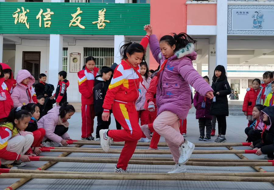 近年来,靖西市化峒镇中心小学积极开展大课间阳光体育活动,组织开展具有民族特色的抛绣球、竹杆舞、踩高跷、板鞋舞、跳绳等丰富多彩的大课间活动,激发同学们对课间体育锻炼的兴趣和热情,提高他们的身体素质深受家长和学生的好评。(黄安忠 陆丽娜)