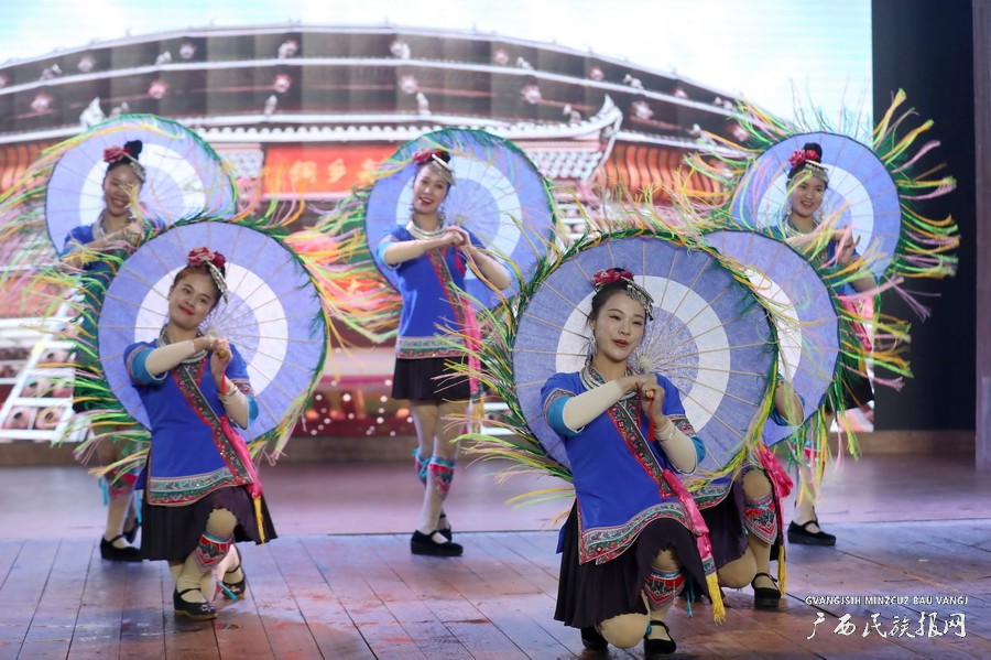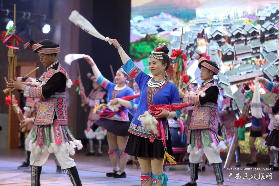 3月26日,演员们在三江侗族自治县月也侗寨景区表演侗族歌舞。