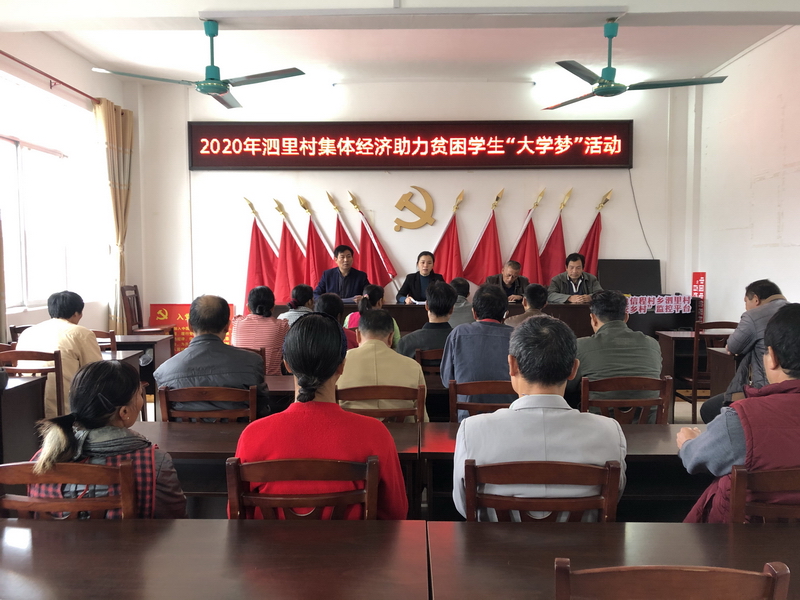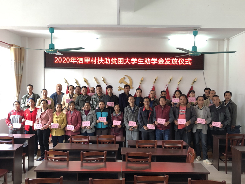 为确保每一名贫困大学生不因贫失学,坚决阻断贫困代际传递,当天,程村乡泗里村利用一部分村集体经济收入扶助全村在读大专以上的37名优秀贫困大学生,其中建档立卡贫困户大学生一次性奖励600元,非建档立卡贫困学生一次性奖励500元,研究生奖励600元。