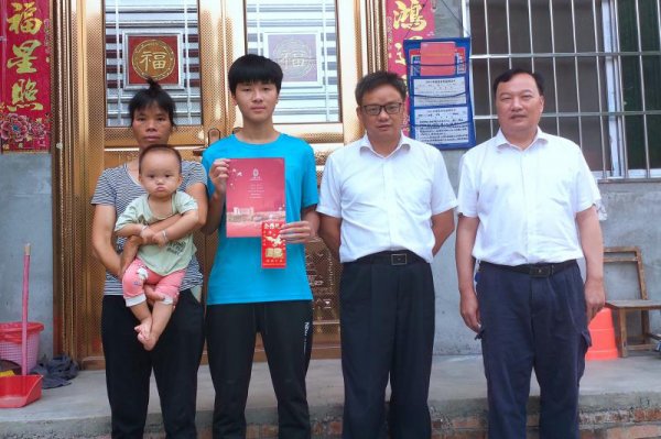 8月21日,在罗城仫佬族自治县罗城仫佬族四把镇双寨村中寨屯,帮扶干部给贫困生谢宇彬送上鼓励红包。 今年高考前,河池罗城供电局梁惠恒(左一)及志愿者在罗城县城区一家书店选购高考...