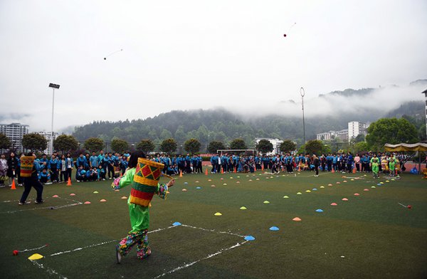 学生在参加背篓投绣球比赛 学生在参加背篓投绣球比赛 学生在参加跳绳比赛 学生在参加跳绳比赛 学生在参加三人板鞋竞走比赛 学生在参加三人板鞋竞走比赛 学生在参加袋鼠跳比赛 3月30日,广西桂林市龙胜各族自治县实验中学举办以我参与我快乐、我快乐我健康为主题的民族传统趣味体育运动会,设置...