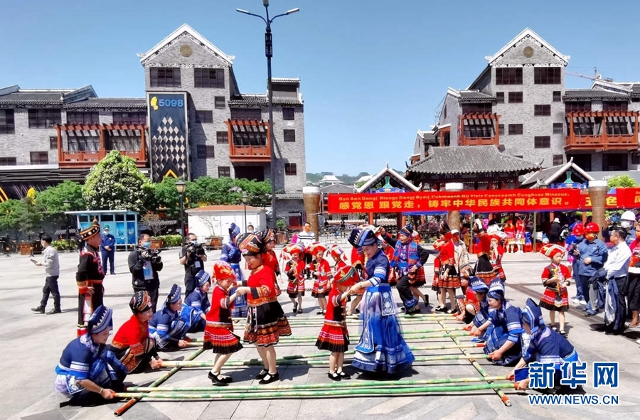 在南丹县里湖瑶族乡朵努社区王尚易地搬迁安置点,332栋独具白裤瑶民族风情的建筑群依山而建。南丹县在安置点建设“中国白裤瑶风情小镇”景区,让白裤瑶特色民俗旅游成为搬迁群众后续发展的主要产业,让他们在家门口吃上“旅游饭”。
