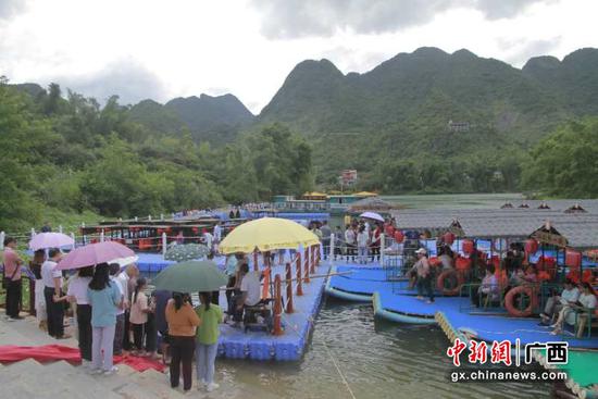 今年以来,红水河坡豪湖旅游码头船筏景区先后对外开放,特别是推出仿古画舫游船,竹筏船得到中外游客的赞赏和喜爱。