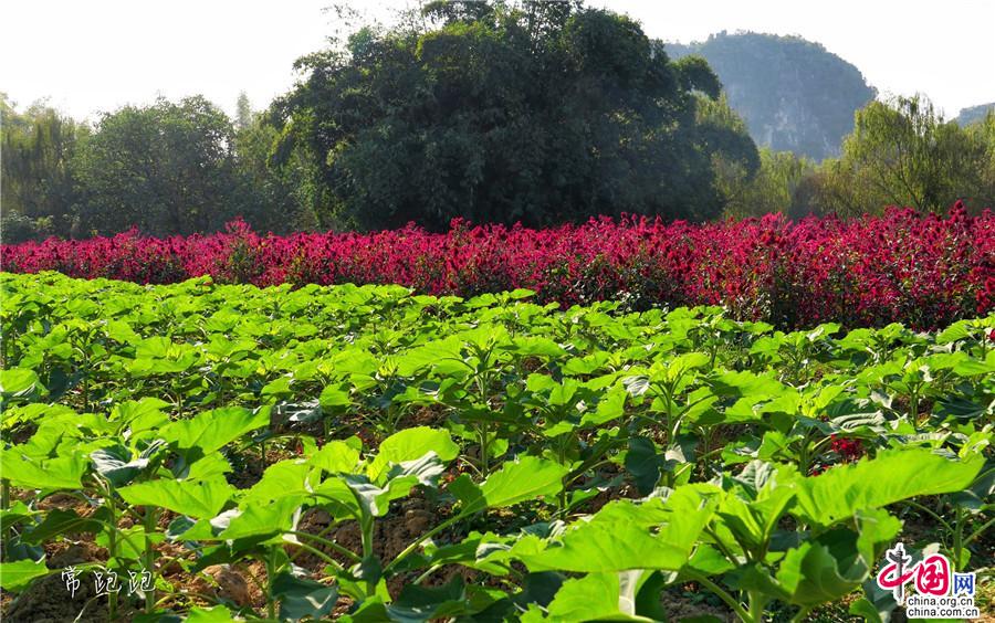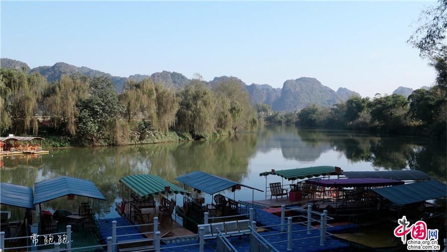景区内有近千亩花田,四季风景不同,冬春季看油菜花、桃花,夏秋季看葵花、荷花,游客可在霞客古渡码头乘坐游船顺清水河而下,沿途近观葵花园及沿河两岸的茂密竹林和各壮乡村庄的风土人情、远观情侣山、簪笔山等景点。徐霞客在《徐霞客游记》中称赞:“其山千百为群,或离或合,山虽小而变态特甚。“正是在描绘此中有情境。