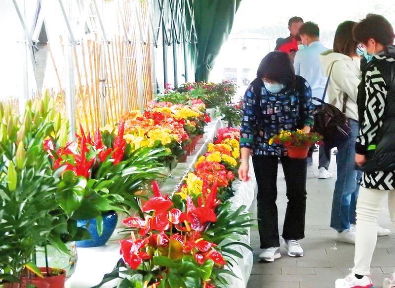 游客在花市里选购心仪的鲜花