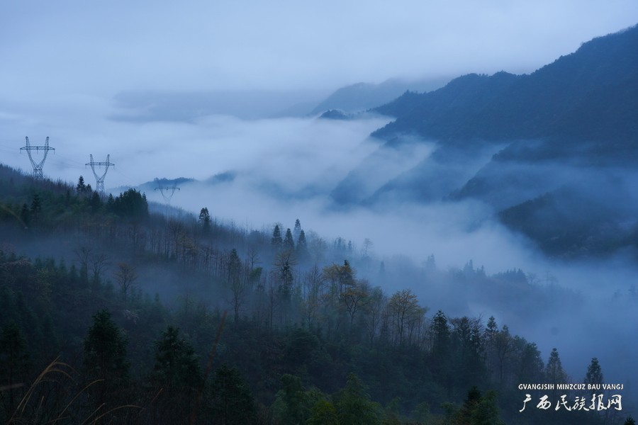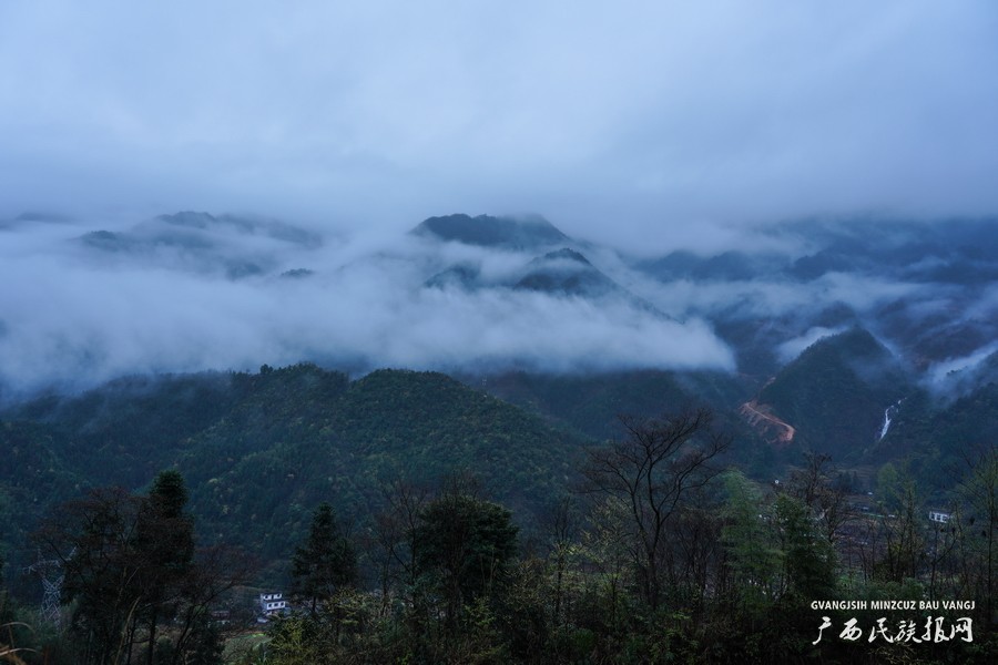 广西兴业:晨雾缭绕 群山宛如水墨画