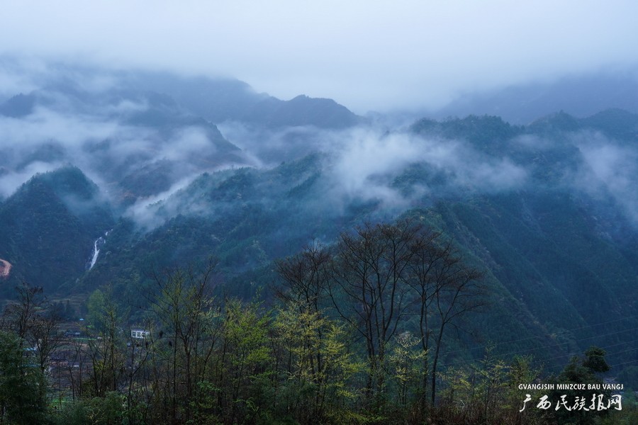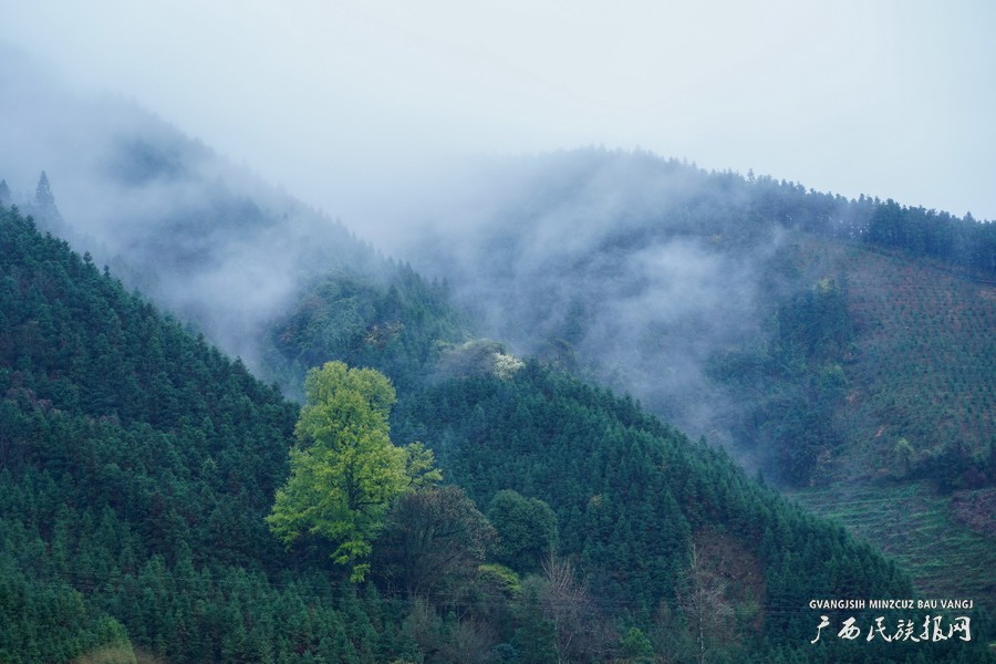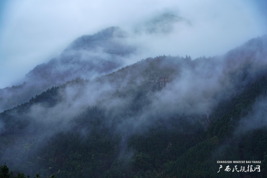 近日,广西桂北迎来了久违的雨水,位于桂林全州县才湾镇境内天湖景区的越城岭山麓,雨后云雾缭绕,美如仙境。(唐广东 摄)