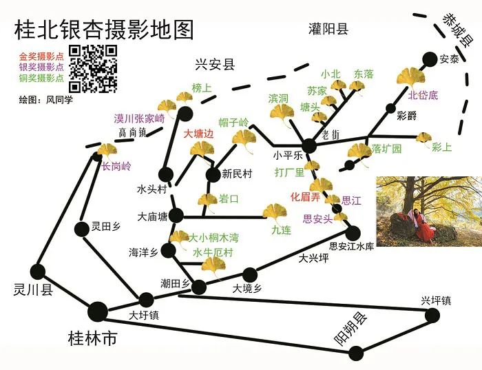 每年的11月下旬,广西的一些地方,就会迎来一些不一样的景色!随着天气渐冷,银杏变黄了,枫叶也逐渐由绿转黄再转红。层林渐染,美丽至极,快!看!桂林的“黄“11月下旬,桂林迎来了银杏最佳观赏时间。这些地方的银杏可千万别错过!下面这张桂北银杏摄影地图保存图片收藏。
