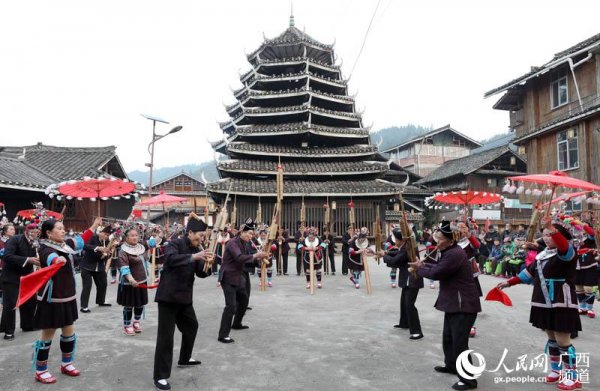 11月29日,广西三江侗族自治县林溪镇冠洞村冠大屯迎来一批“冬游广西”游客,当地侗族群众以芦笙踩堂、侗族大歌、侗族琵琶歌、百家宴、多耶等丰富节目,与游客激情互动,让游客们尽享侗乡独特文化魅力。...