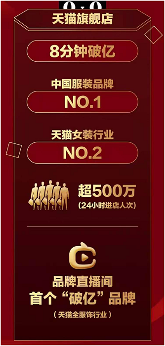 通过直播,消费者看到了全新的、适配当下消费者喜好的轻暖系列、城市运动系列以及设计师合作系列等一系列时尚又高质量的羽绒服,对波司登有了全新的认知,也为波司登双十一在本土品牌中销售夺冠迈出重要一步。