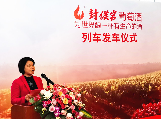 农卓松在致辞中表示,“封侯岩·为世界酿一杯有生命的酒“冠名列车启程首发,这标志着贵港市营商工作再创佳绩,又一“贵港造“品牌走向全国。她说,2017年贵港自然活酒科技有限公司选择到贵港投资兴业,通过政府的大力扶持,积极推动技术创新,实现了“封侯岩“葡萄酒品牌由小到大、由弱到强、由地方性品牌到区域性品牌的迅速成长,成为了政企合作、实现双赢的典范,是贵港大力优化营商环境的最佳印证之一。衷心期望贵港自然活酒科技有限公司在与广西高铁商旅服务有限公司精诚合作的过程中,把冠名列车打造成流动的城市名片,进一步将贵港的蓬勃发展和营商故事传颂出去,使更多的游客和投资商源源不断“车“进贵港,把“贵港造“品牌以及“荷城“的独特魅力“推“向全国。贵港市人民政府也将继续以“贵港速度“推动贵港经济更高质量发展,为企业提供一流的服务,营造一流的营商环境,我们与560万淳朴好客的贵港人民一道,敞开怀抱恭迎大家来到贵港观光旅游、投资兴业。