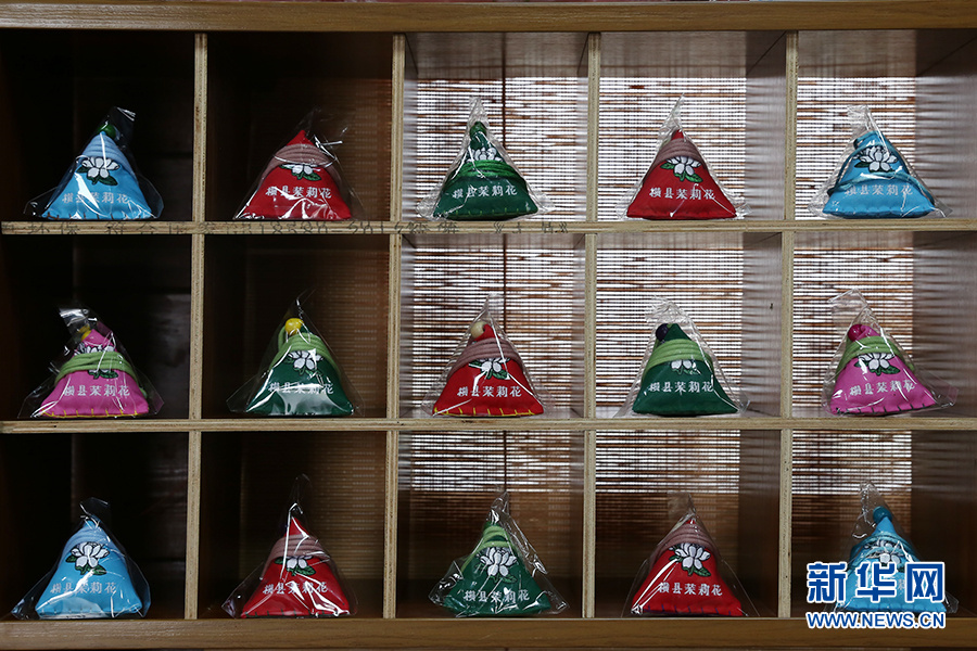 横县还依托“中国茉莉之乡“打造“茉莉闻香之旅“旅游品牌。在中华茉莉园游客服务中心,摆放着各式各样的香包、抱枕、挎包等产品,这些精美的文创产品因极具特色的茉莉花文化元素受到游客的青睐。