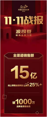 中新网11月16日电 近日,波司登集团对外公布了双十一销售数据:集团羽绒服业务线上零售金额同比上涨35%以上,主品牌波司登线上零售金额同比录得约25%以上的升幅,连续两年位居国内服饰类榜首。...