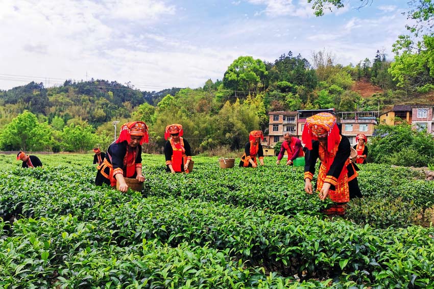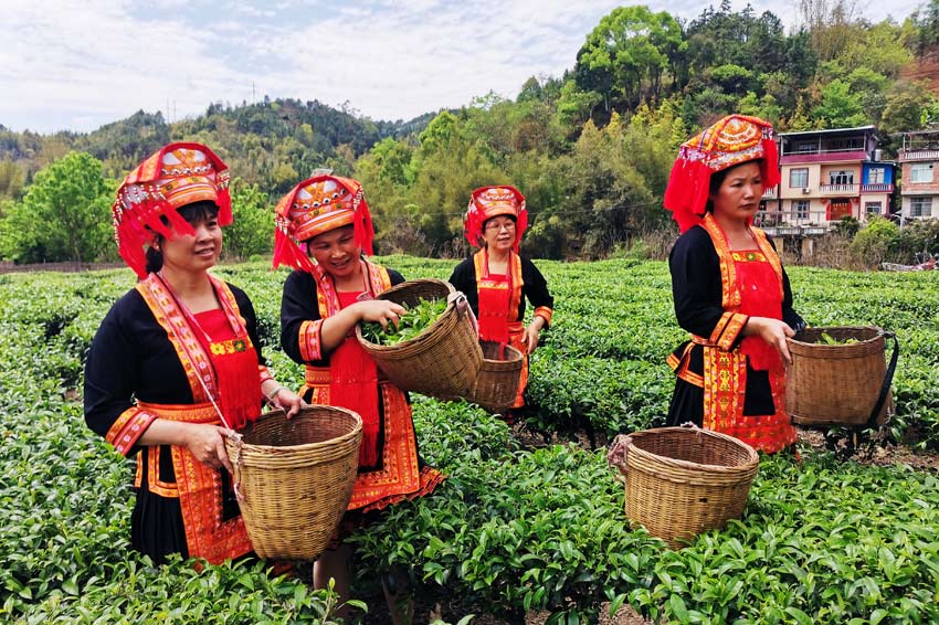 瑶民们正在采摘茶叶。文永红摄