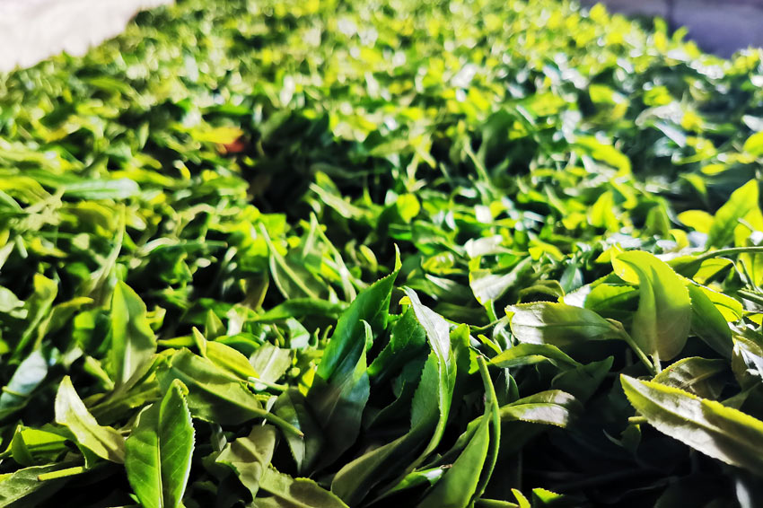 刚采摘新鲜的绿茶。文永红摄