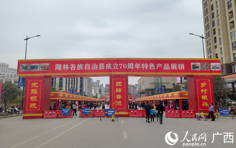 人民网隆林3月28日电 (记者周雨乐)3月25日-29日,由隆林各族自治县党委、政府主办,广西隆林联拓置业有限公司承办的隆林各族自治县成立70周年特色产品展销在隆林举行。据介绍,此次特色产品展销会整合了隆林独具各民族特色、丰富多彩的非遗资源,以沉浸式的互动体验理念,采用非遗体验、非遗打卡、非遗展演等方式,向外界展示了隆林多彩的民族文化底蕴。
