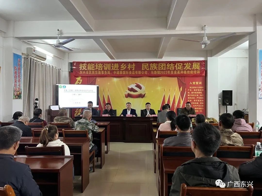 为推动边境地区的产业发展、大力培育美食蕉特色产业,3月29日,由东兴市民宗局、马路镇政府联合主办,中越泰国际食品有限公司承办的美食蕉种植技能培训班在马路镇大桥村举行,马路镇各村25名种植户参加了此次培训。