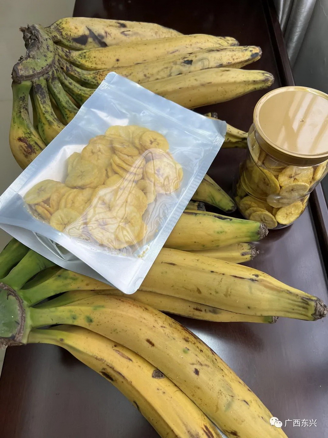 东兴市中越泰国际食品有限公司董事长 谢宏异:中越泰食品加工企业与广州农科院果树研究所共同合作一款美食蕉加工生产项目,我们发动马路镇周围群众进行种植美食蕉品种,通过“企业+基地+农户”模式进行合作,前期预计种植500亩,由企业全部保价收购,让当地村民能够创收、增收。