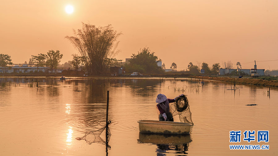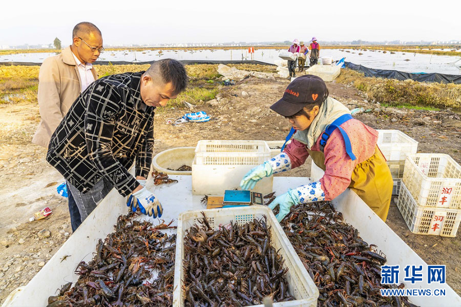 在春风送暖、百花盛放的季节,广西桂平南木镇的农户们忙着从稻田里拉起地笼,一只只活蹦乱跳的小龙虾顺势滚进篮筐,收购商与工人们一起将小龙虾入筐、挑选、称重,销往全国各地,走上千家万户的餐桌。