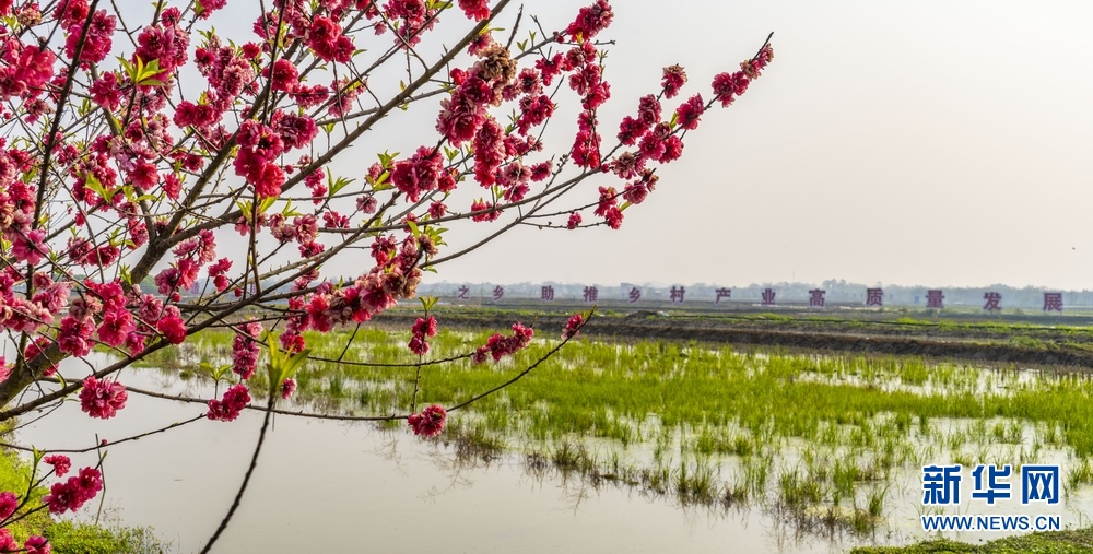 桂平南木中桥稻虾基地边上桃花盛开。韦伟海 摄