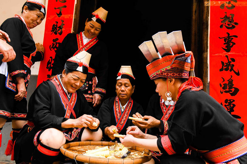 把肉馅儿包进竹笋里。金秀瑶族自治县融媒体中心供图