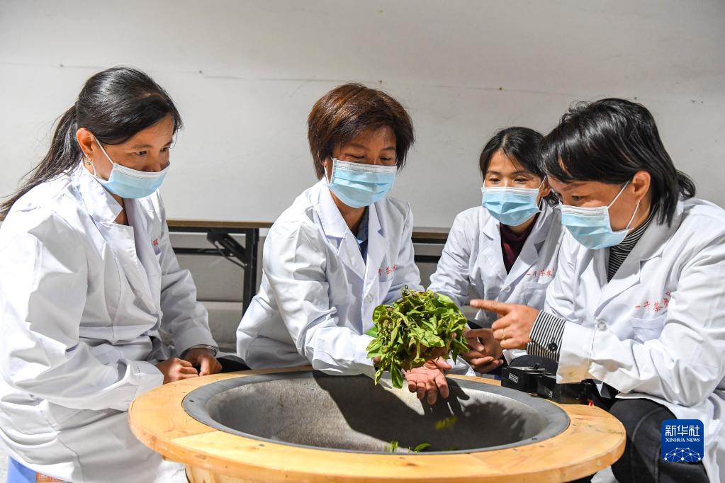 12月10日,卢花暖(左二)为本村茶农讲解炒茶技巧。