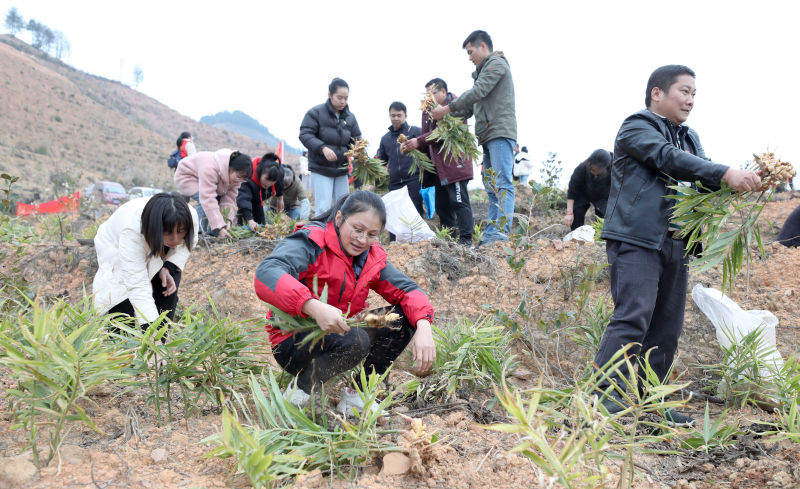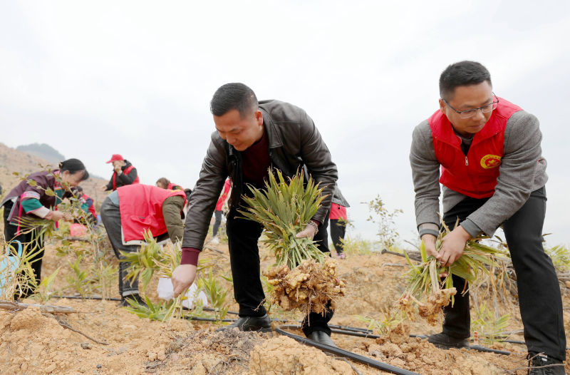 党员干部们在油茶基地里采收生姜。龚普康摄