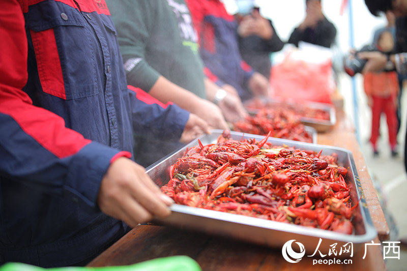 游客体验现场煮小龙虾。人民网 吴明江摄