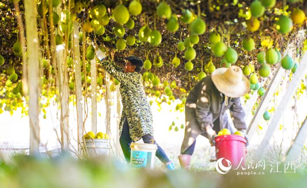 人民网南昌12月5日电 (毛思远)12月2日,江西省新余市仙女湖区河下镇平川村瓜蒌种植基地,农户忙着采摘、加工、晾晒收获的瓜蒌。近年来,新余市通过调整农产品种植结构,流转土地规模化发...