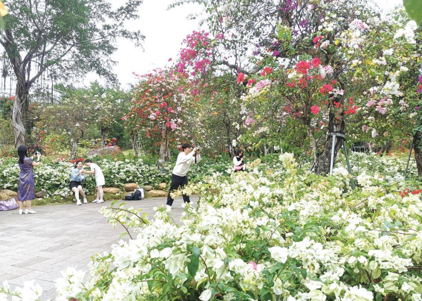 繁花织锦绣,满城四季青。冬日的南宁,鸟语花香,生机盎然,与北方白雪皑皑的冬景完全不同。近日来,降雨过后,人们又开启了出游打卡、户外拓展的模式。景色怡人的青秀山风景区东区,各色叶子花相继盛开,游人纷至沓来,拥抱大自然,与充满“青春”活力的花草树木同框合影,留下缤纷记忆。