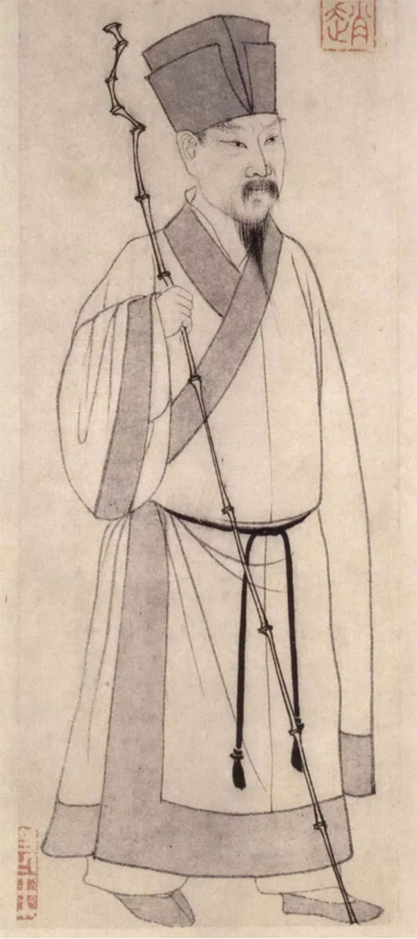 画中苏轼戴着经典的“东坡帽“,秀眉炯目、手持竹杖的姿态让人想起苏轼名句“竹杖芒鞋轻胜马,谁怕?一蓑烟雨任平生“,在雅士风度之外不禁让人感受到他内心的恣意和潇洒,这张画像显示了赵孟頫对“苏轼文化人格“的认同和仰慕。