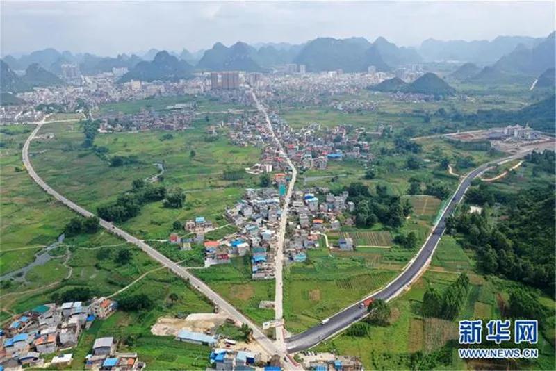 广西罗城仫佬族自治县东门镇境内的道路(9月16日摄,无人机照片)