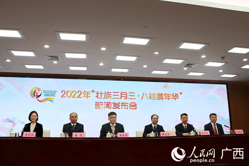 人民网南宁4月1日电 (覃心)3月31日下午,广西举行了2022年“壮族三月三·八桂嘉年华“文化旅游消费品牌活动新闻发布会。本次活动主题是“喜迎党的二十大 中华民族一家亲“,集中活动时间为4月2日至5月2日,持续一个月。
