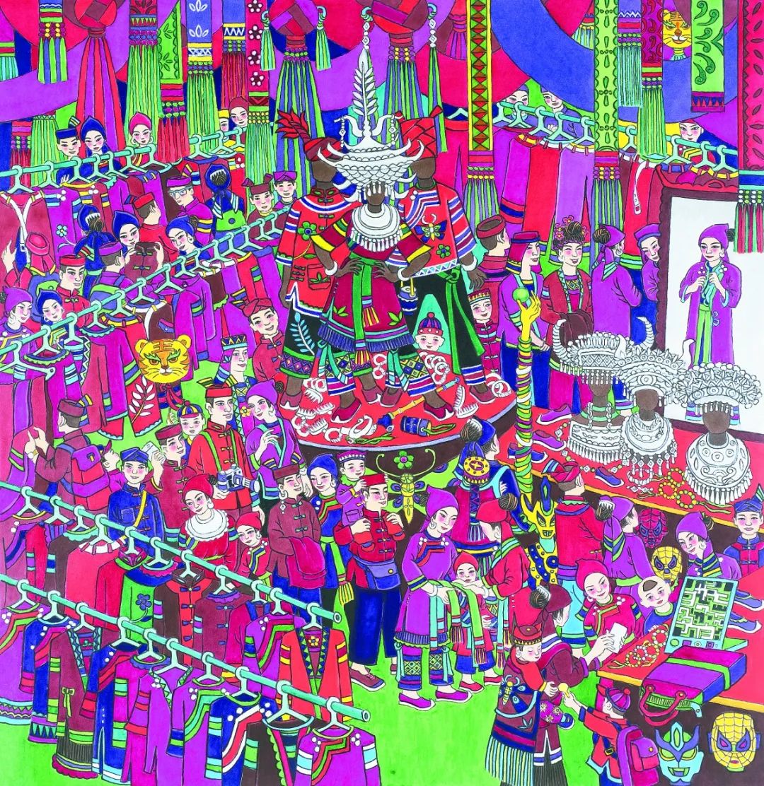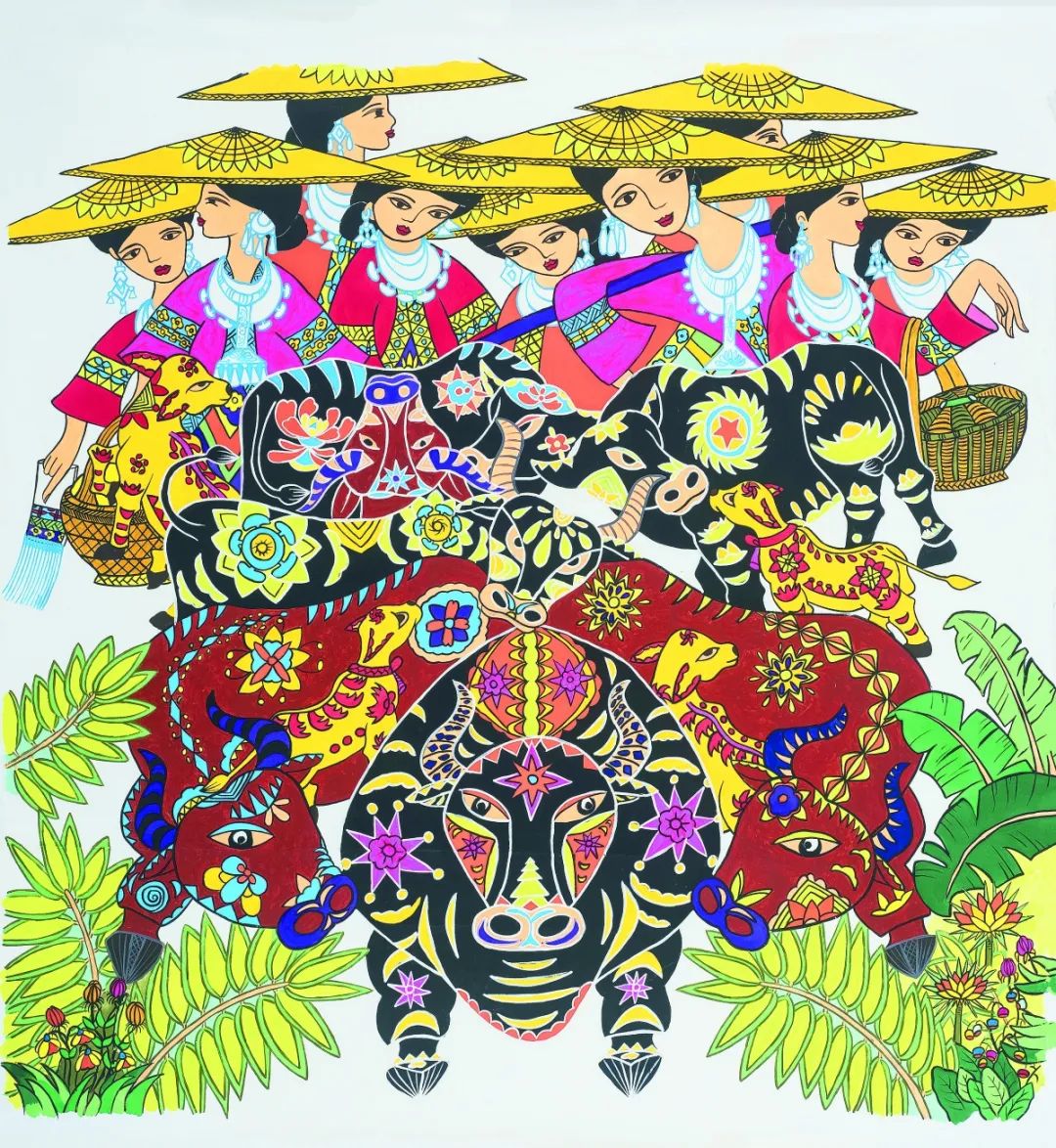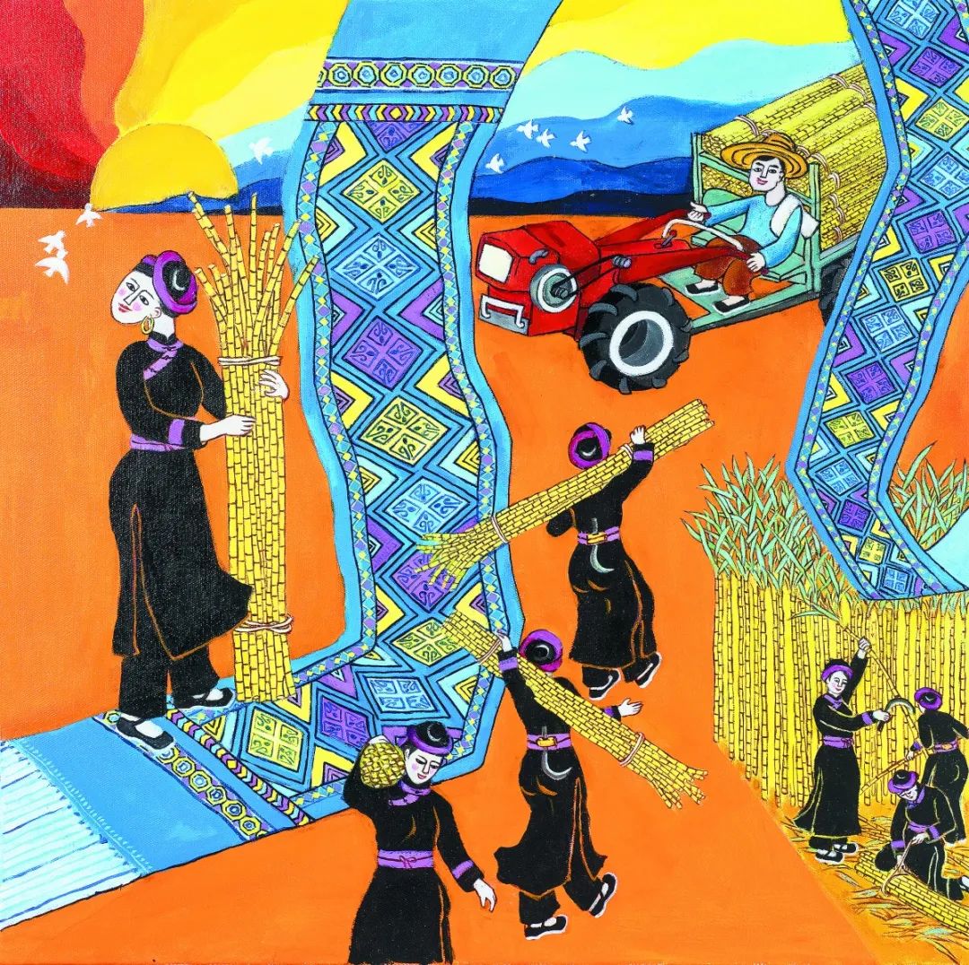 4月29日,由广西书画院、广西美术家协会联合主办的“喜迎二十大 丹青绘振兴——2022广西农民画大展“在南宁举办。本次画展共收到全区各地农民画家投稿作品1076件,经专家评审,最终有278件佳作展出。热情纯朴的广西农民画家以手中的画笔生动展示了八桂大地发生的深刻变化,反映了农村巩固拓展脱贫攻坚成果同乡村振兴有效衔接。农民画家们用多样的艺术手法描绘了身边产业发展、乡村振兴、民族团结、民生改善等火热故事,充分反映了基层艺术家们拥抱时代、关注现实、扎根生活、服务人民的理想志趣、艺术兴趣、生活乐趣,充分表达了壮乡儿女紧跟伟大复兴领航人踔厉笃行的共同心声,为迎接党的二十大胜利召开营造了良好的社会氛围。现选发部分佳作,以飨读者。