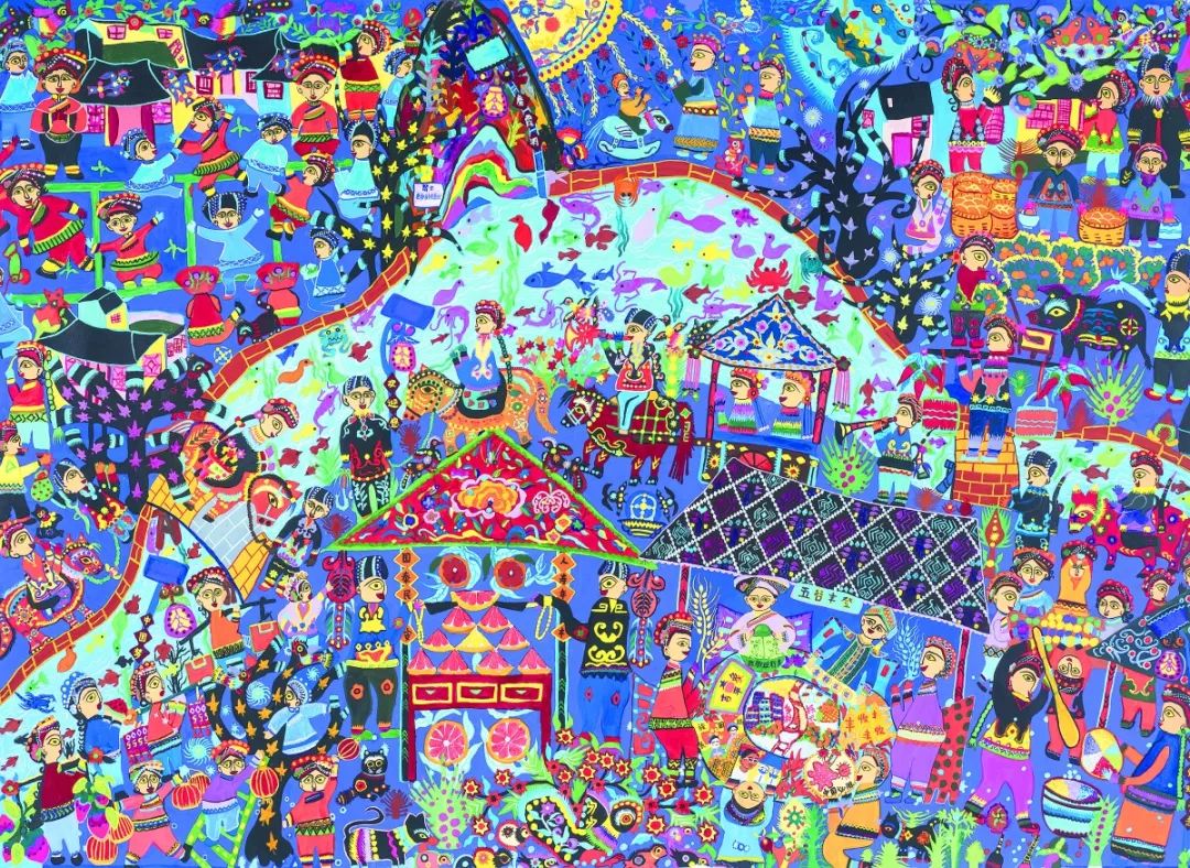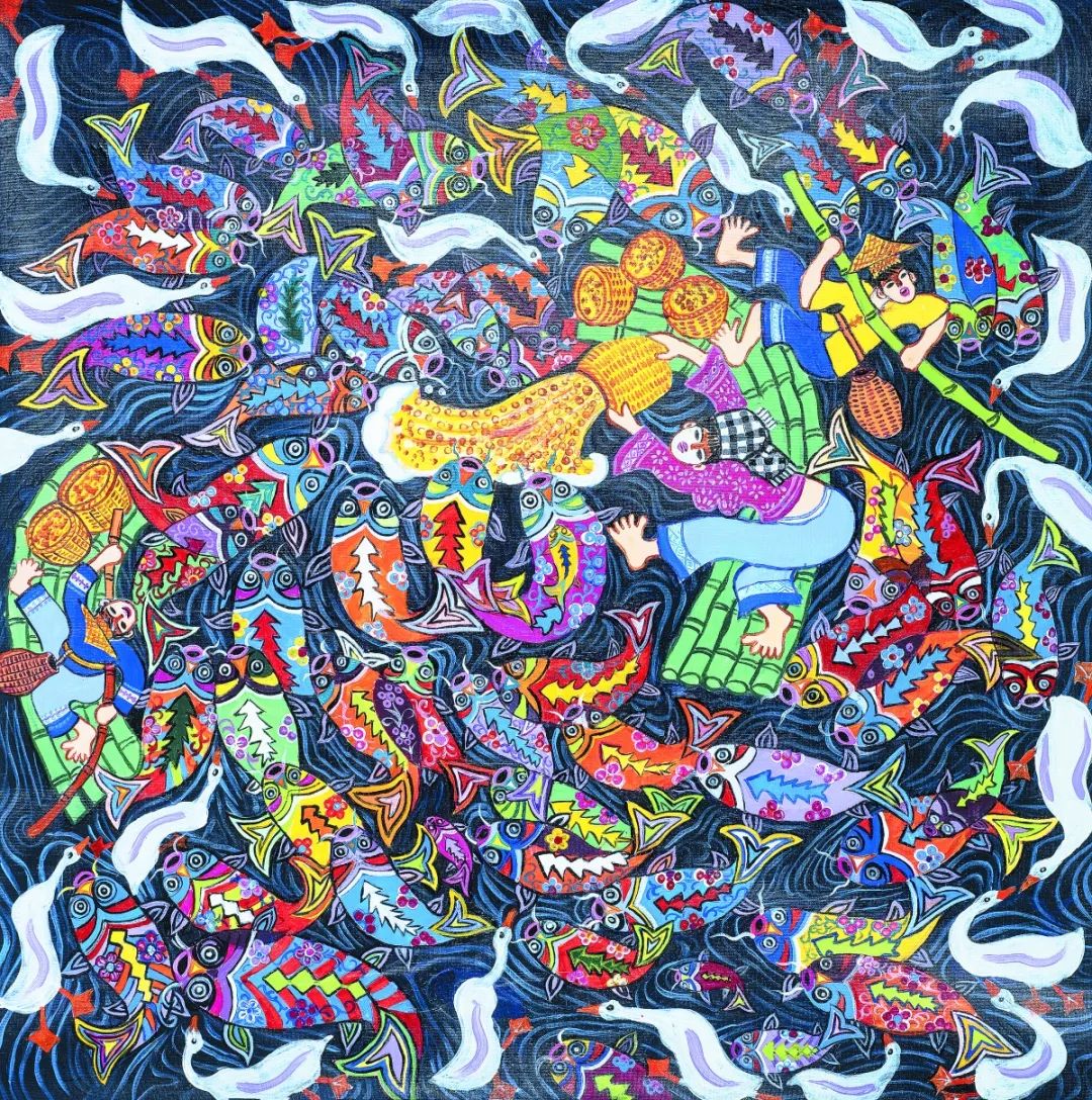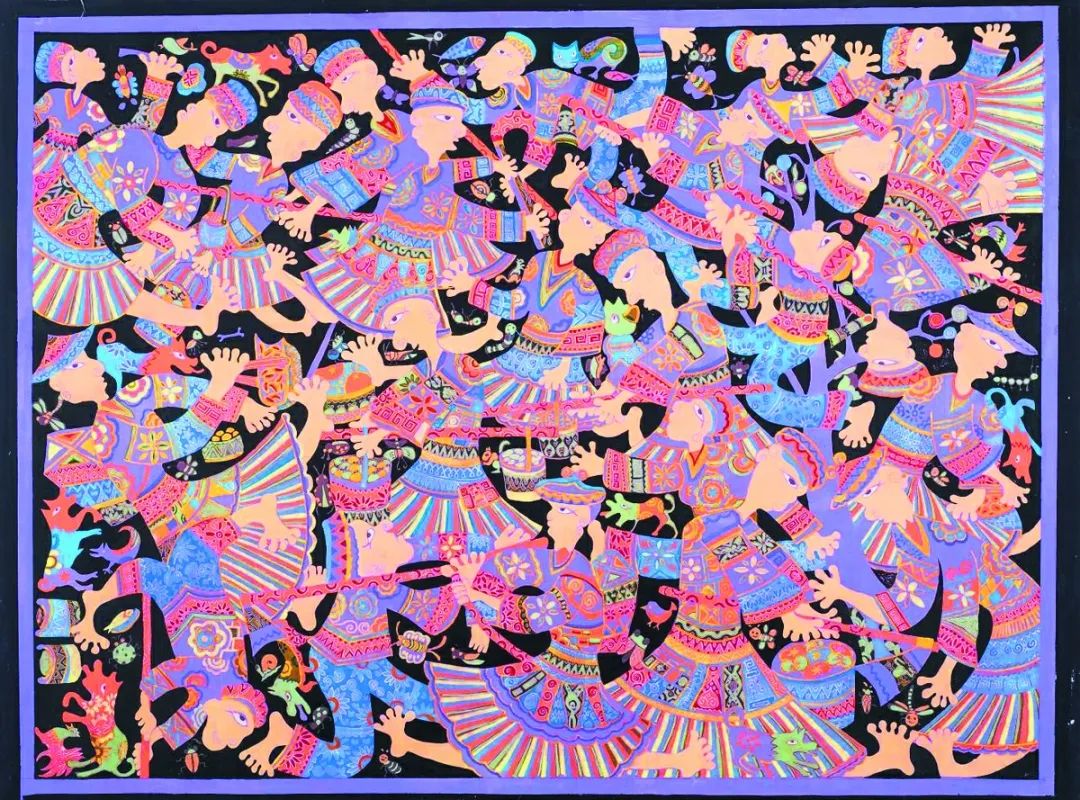 4月29日,由广西书画院、广西美术家协会联合主办的“喜迎二十大 丹青绘振兴——2022广西农民画大展“在南宁举办。本次画展共收到全区各地农民画家投稿作品1076件,经专家评审,最终有278件佳作展出。热情纯朴的广西农民画家以手中的画笔生动展示了八桂大地发生的深刻变化,反映了农村巩固拓展脱贫攻坚成果同乡村振兴有效衔接。农民画家们用多样的艺术手法描绘了身边产业发展、乡村振兴、民族团结、民生改善等火热故事,充分反映了基层艺术家们拥抱时代、关注现实、扎根生活、服务人民的理想志趣、艺术兴趣、生活乐趣,充分表达了壮乡儿女紧跟伟大复兴领航人踔厉笃行的共同心声,为迎接党的二十大胜利召开营造了良好的社会氛围。现选发部分佳作,以飨读者。