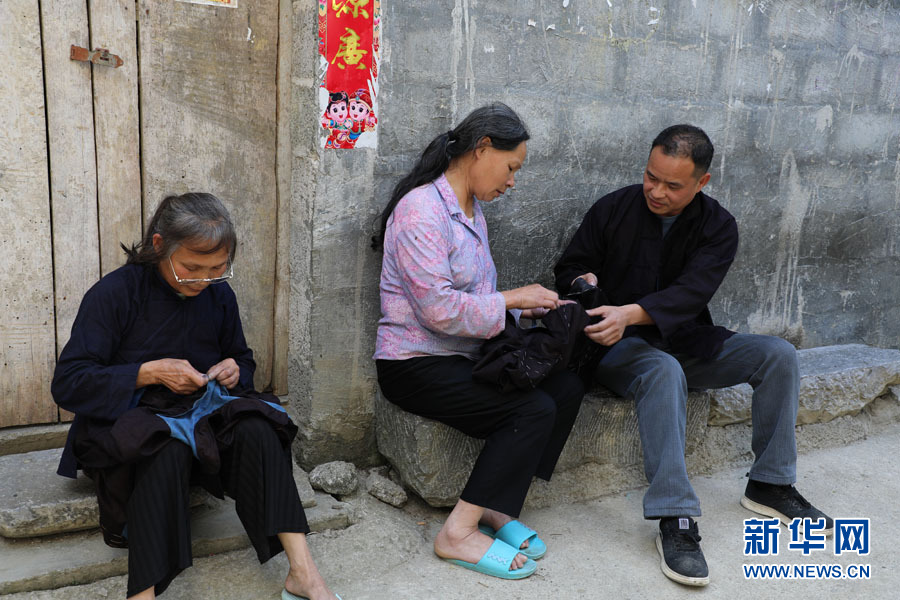 德周村妇女在交流土布壮衣的制作工艺