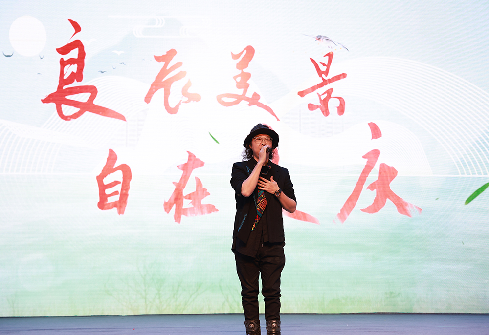 青年歌手赵羽正在演唱原创歌曲《良庆之恋》。