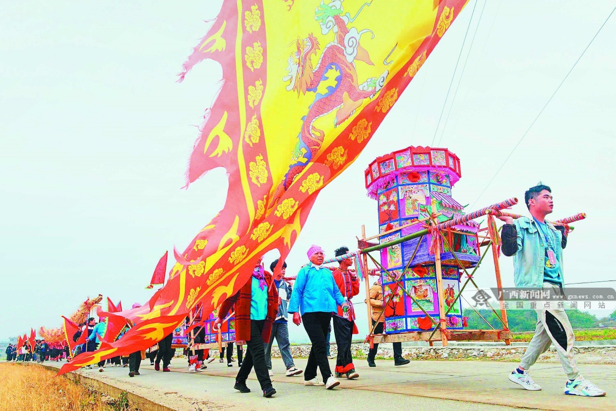 2月2日,富川瑶族自治县莲山镇上莲塘村举行传统抢花炮活动,人们在花炮巡游、舞龙舞狮、山歌对唱和抢花炮吉祥物等多彩民俗中喜迎元宵佳节。黄旭胡 摄