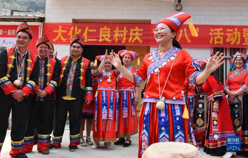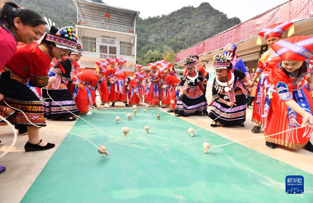 当日,广西大化瑶族自治县大化镇仁良村举办“三八”国际妇女节陀螺比赛,壮、瑶、汉等各族妇女欢聚一堂,通过打陀螺、跳竹竿舞、品长桌宴等丰富多彩的民俗体育和文化活动,迎接节日。