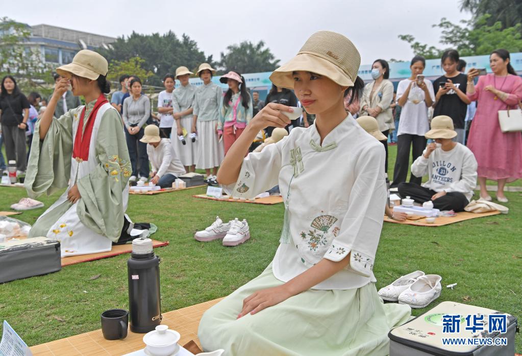 5月14日,来自东盟国家的留学生在活动现场品茶。