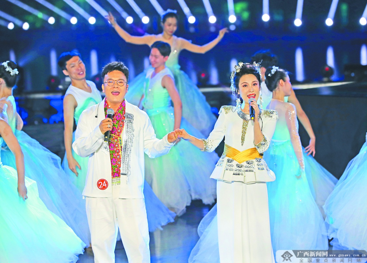 “看到流水,就能看到爱情的模样……”十强选手银悦西和袁泉在总决赛中带来一曲原创水族情歌《希普都爱》。获全国“仫佬族之花”称号的银悦西,曾代表仫佬族参加北京奥运会开闭幕式演出,袁泉是广西乐坛的资深唱将,民通跨界的青年歌手,两人珠联璧合的演绎,唱出了山水之间的浓情蜜意。