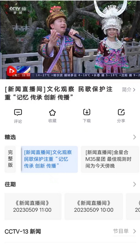中央电视台CCTV-13《新闻直播间》对广西融水苗歌等相关此次活动报道