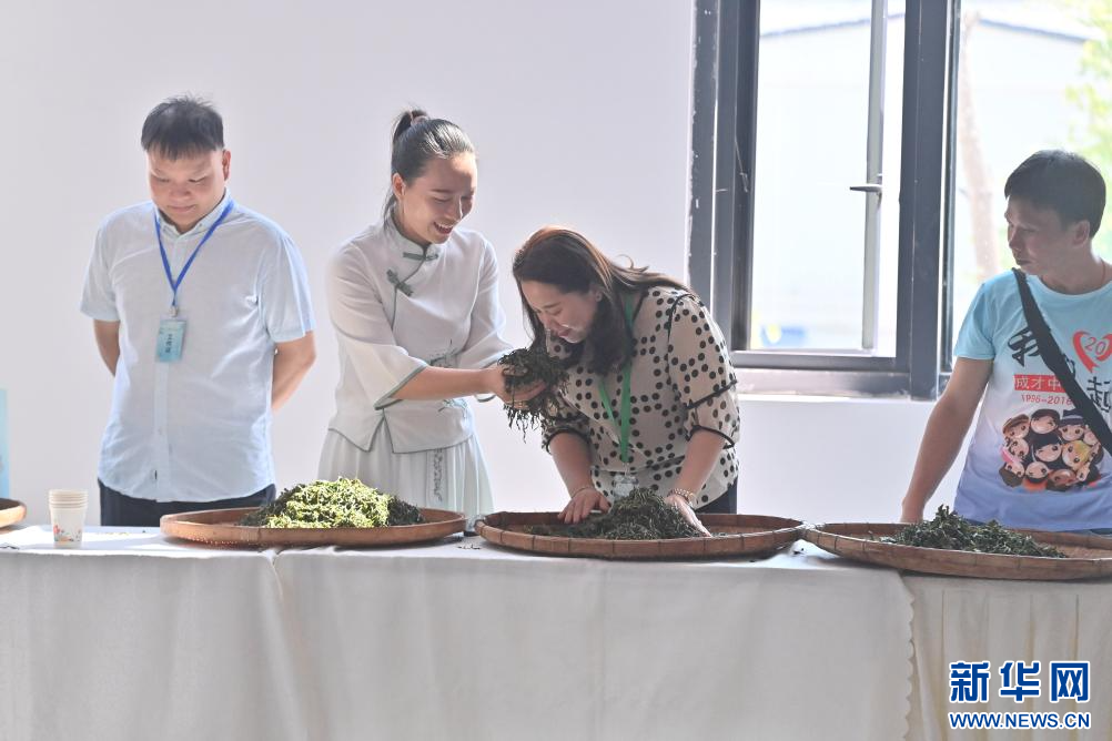 10月15日,在梧州市苍梧县六堡镇六堡茶文化广场,观众体验制作六堡茶。