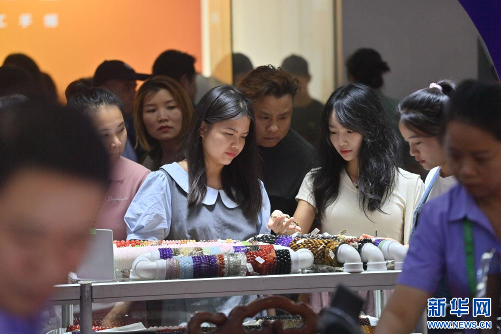 10月15日,在梧州市六堡茶城,观众选购饰品。