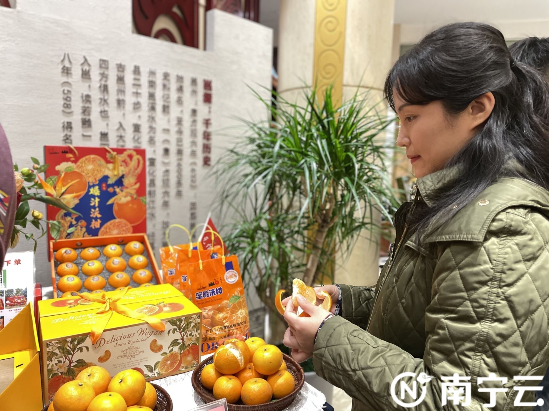 南宁明园饭店在酒店大堂布置了沃柑砂糖橘免费品尝区。记者 邓玲 摄