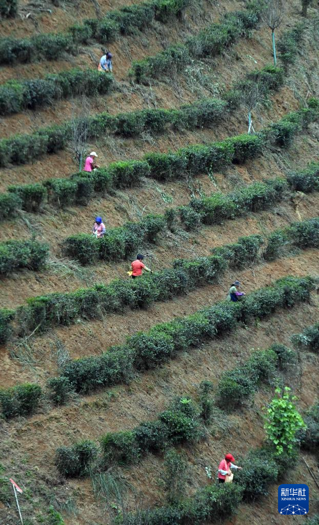 3月25日,在梧州市苍梧县六堡镇合口茶园,茶农们在采茶。